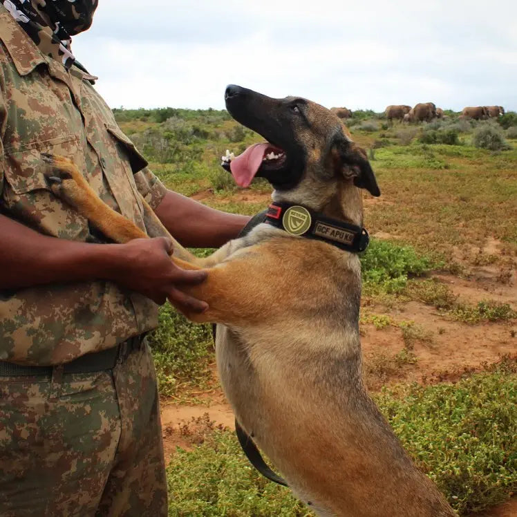 GCF's Belgian Malinois dogs are a man and wildlife's best friend – with their agility, intelligence, and hunting instincts they have been helpful partners to anti-poaching units across Africa. On the field, these dogs are great at tracking and apprehending poachers – specifically sniffing out pangolin scales, rhino horn, and ivory.
